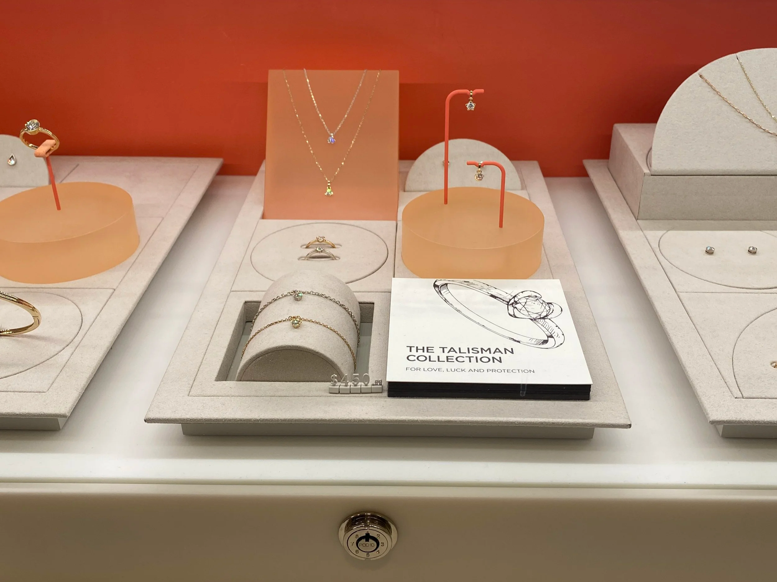The creative brief called for a modern, uncomplicated expression of diamonds as a destination within the brand — one that highlighted craft, a sense of play, and the celebration of personal love stories. The kit of parts needed to be modular yet rooted in sculptural, artistic inspiration, functioning across caselines, wall bays, storage drawers, and presentation materials.